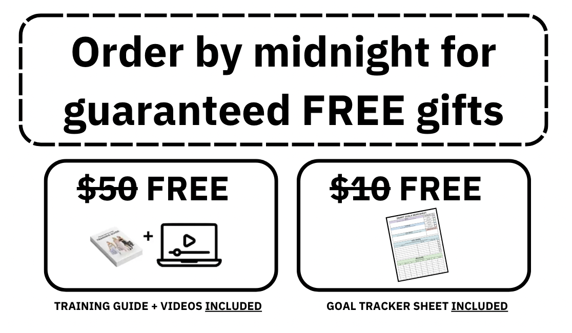 You will also receive access to a FREE digital training guide with videos and a FREE goal tracker sheet.